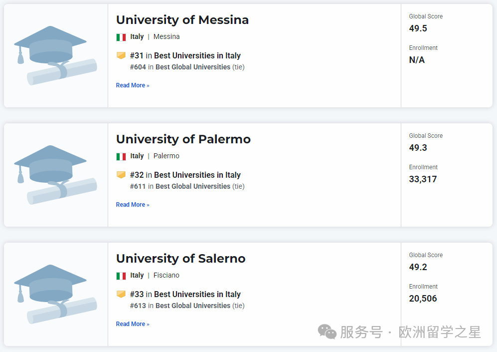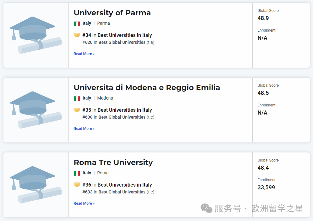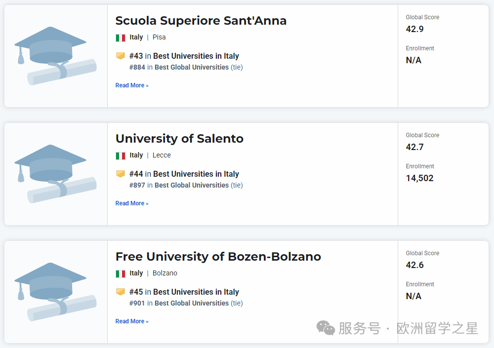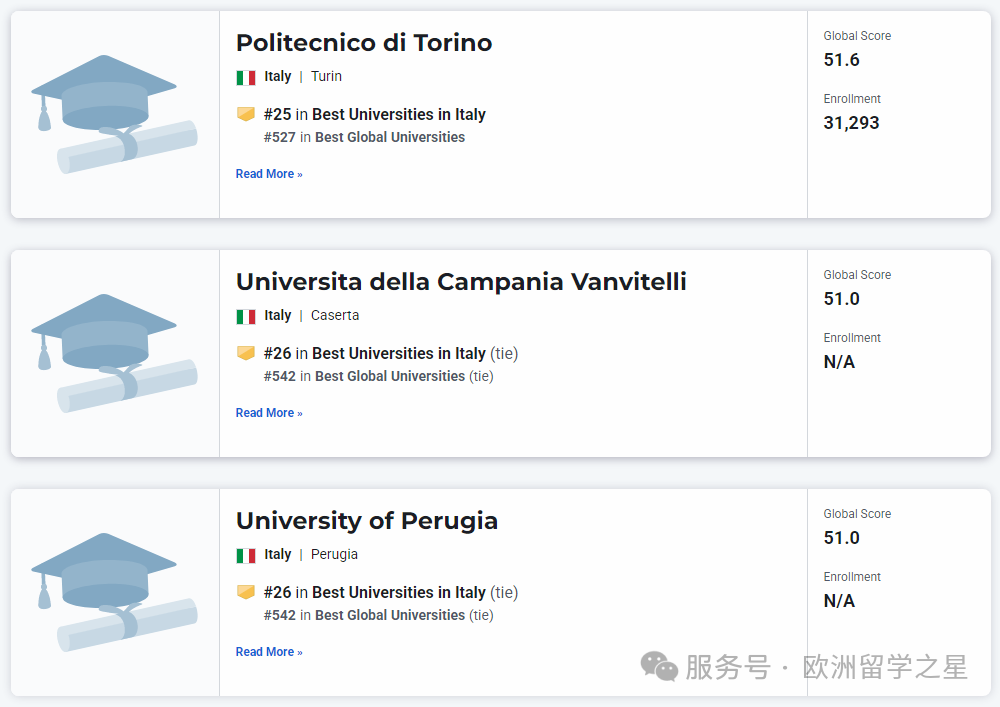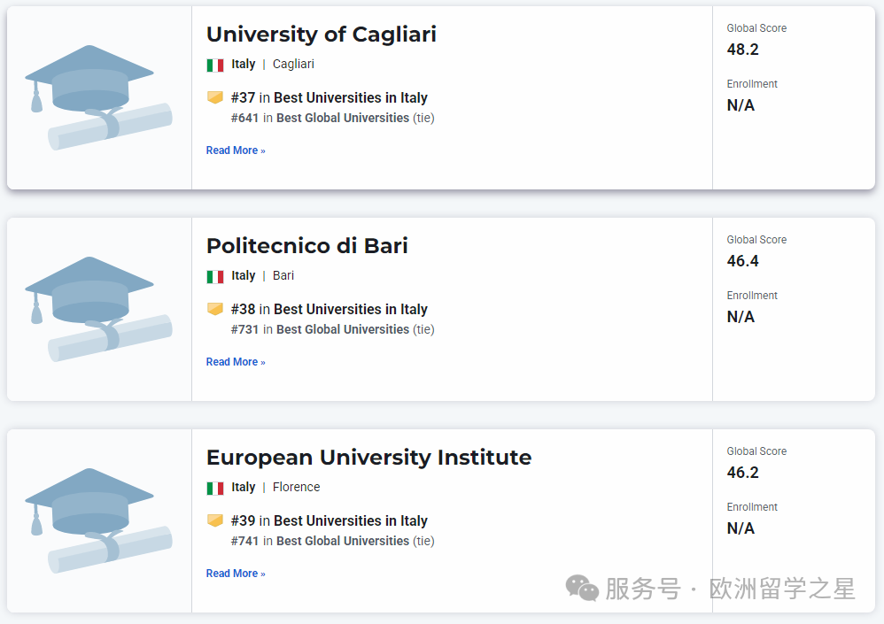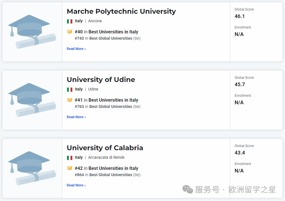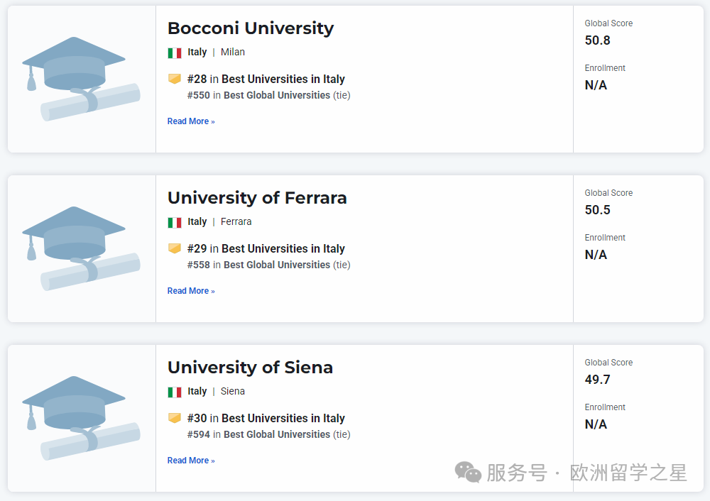 其余上榜前1000的意大利大学排名如下: