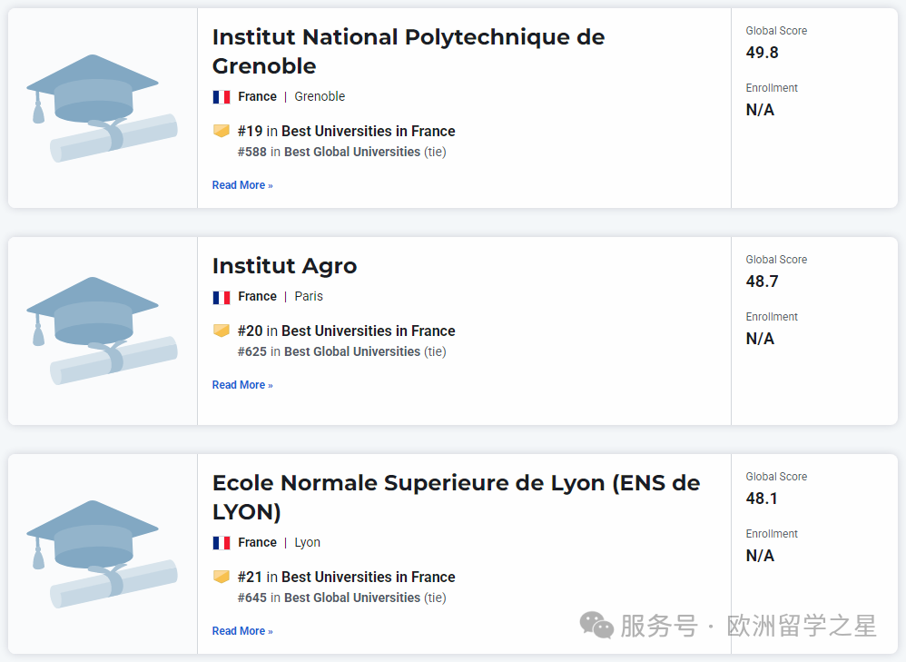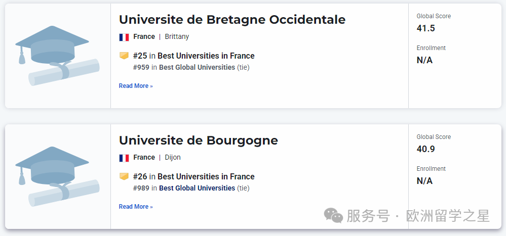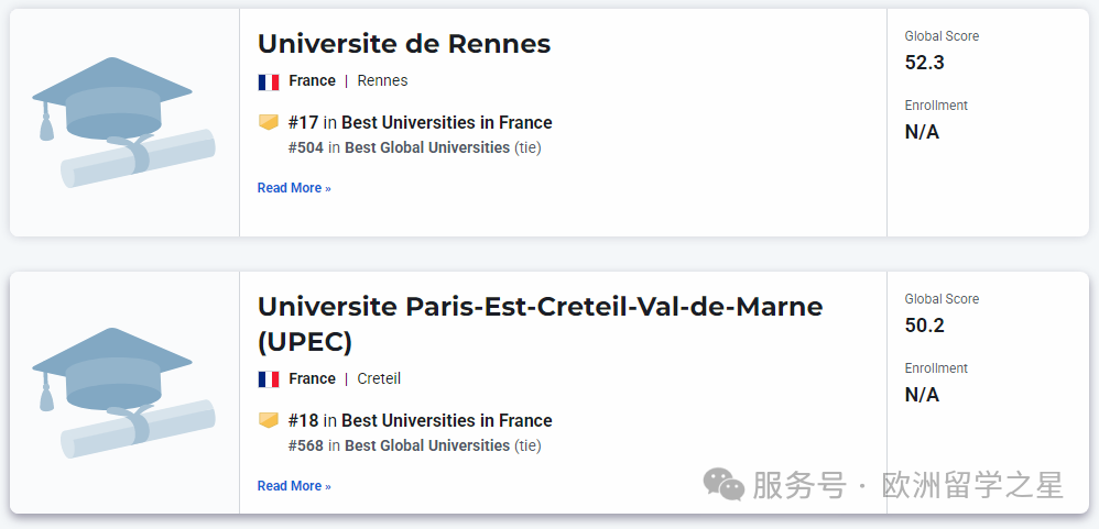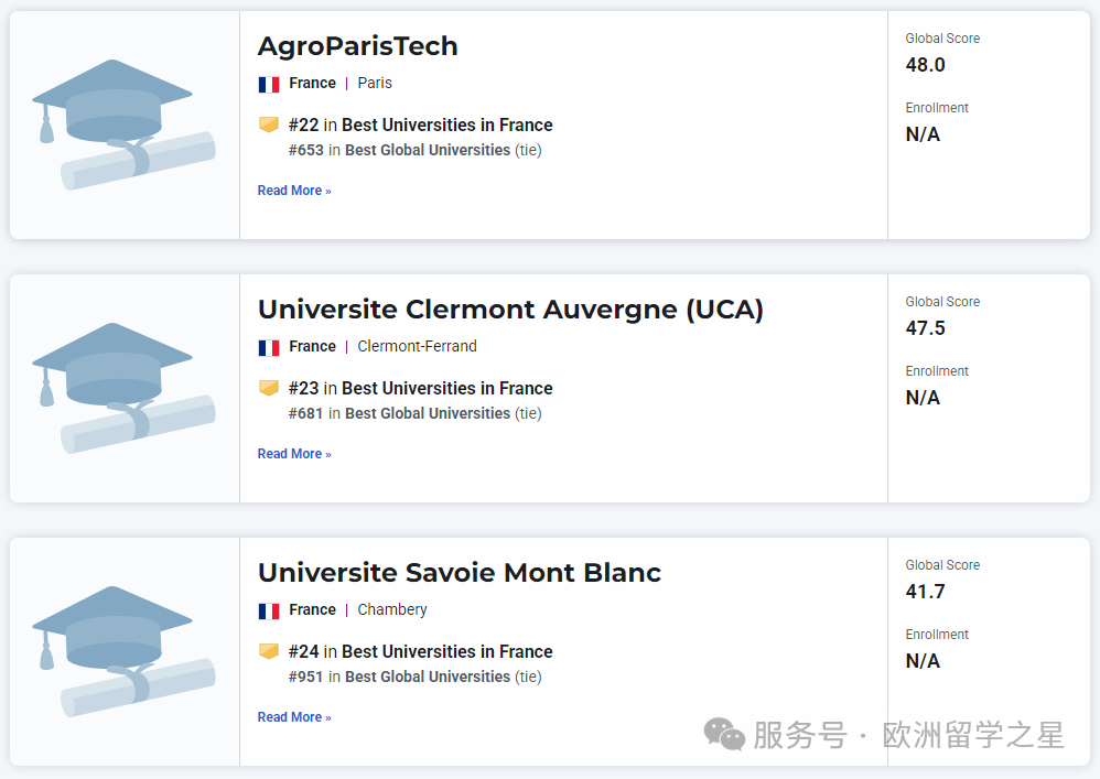 其余上榜前1000的法国大学排名如下: