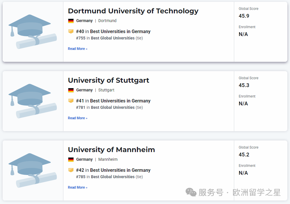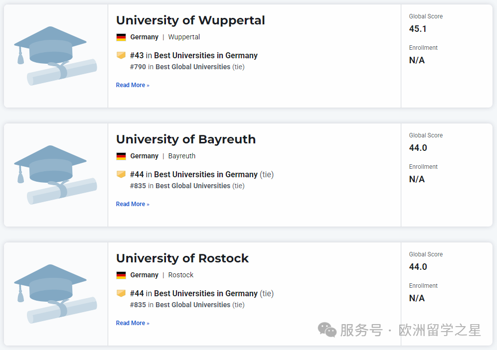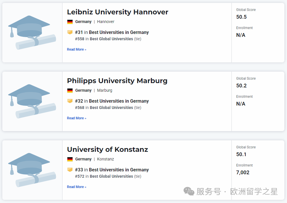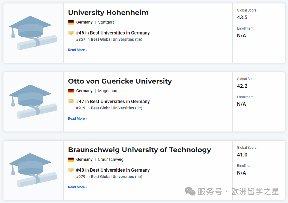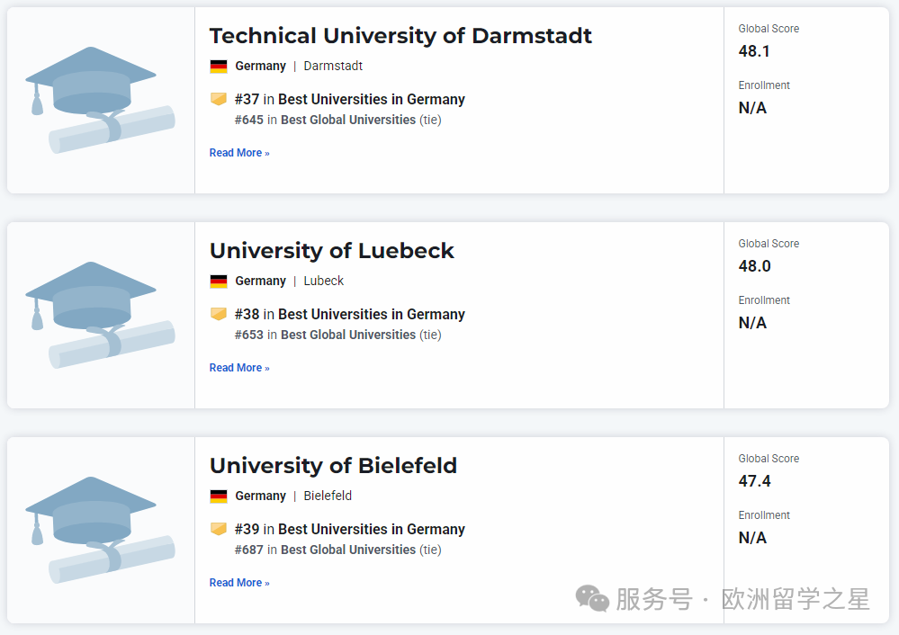 其余上榜前1000的德国大学排名如下: