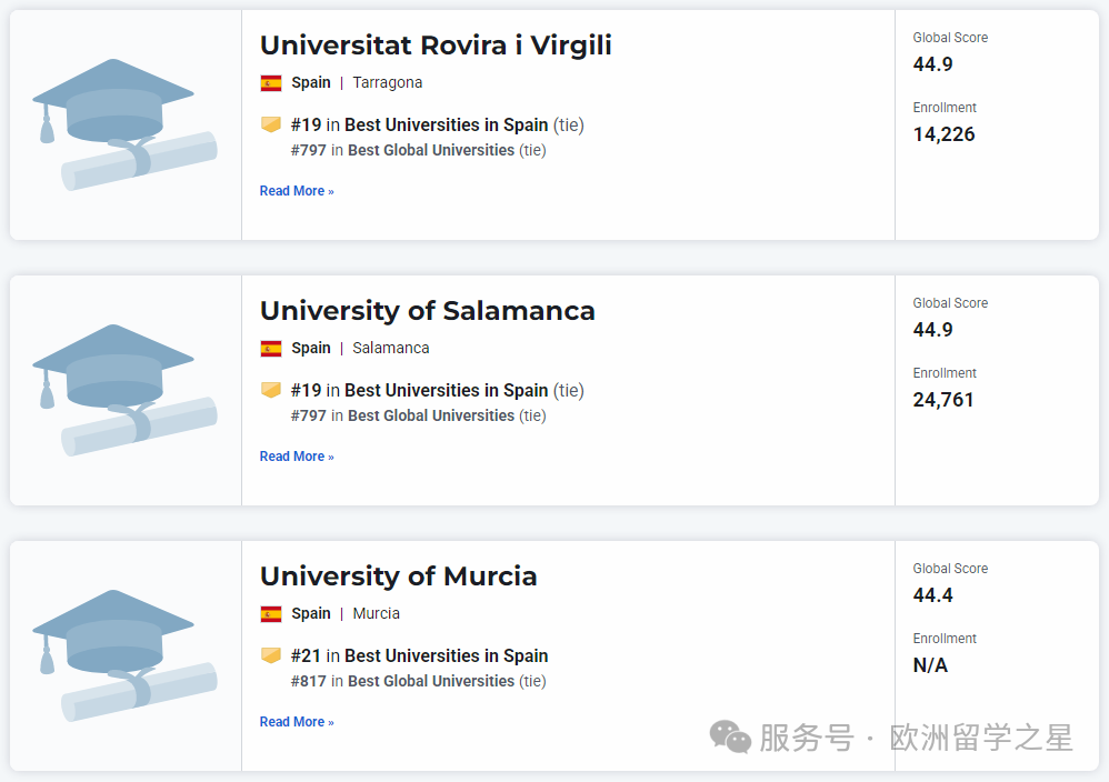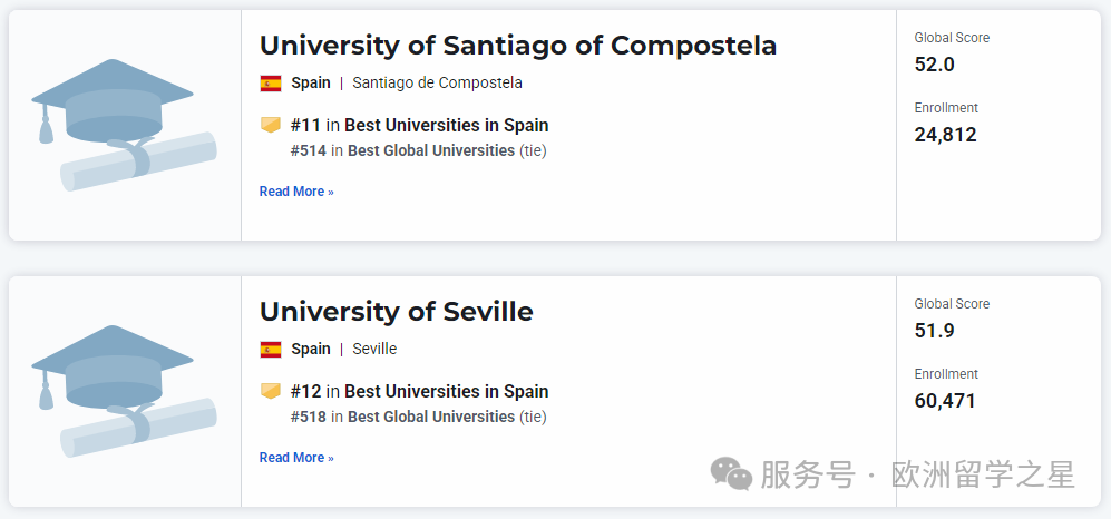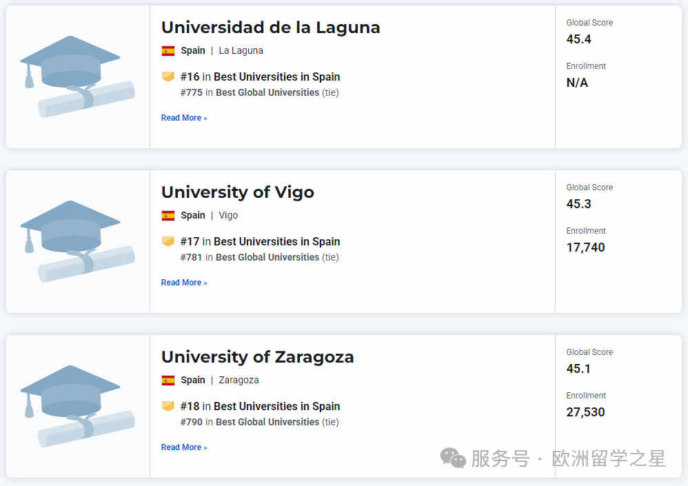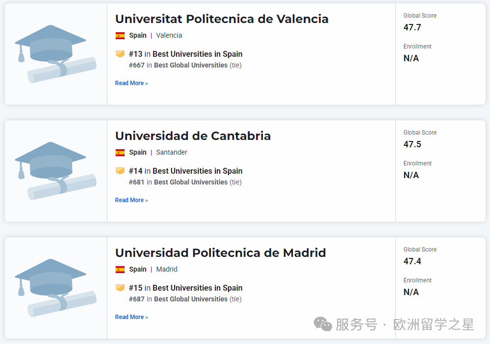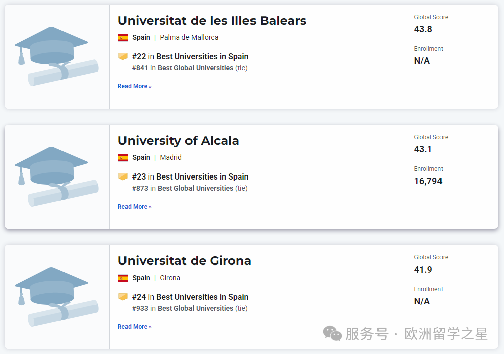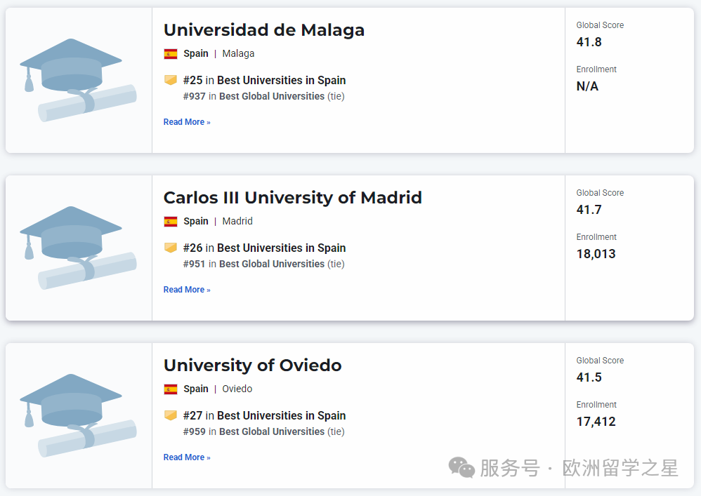 其余上榜前1000的西班牙大学排名如下: